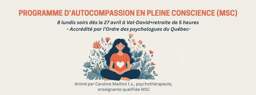 Caroline Mailhot, t.s., psychothérapeute ,enseignante de yoga et de pleine conscience, enseignante qualifiée MSC. https://carolinemailhot.com/